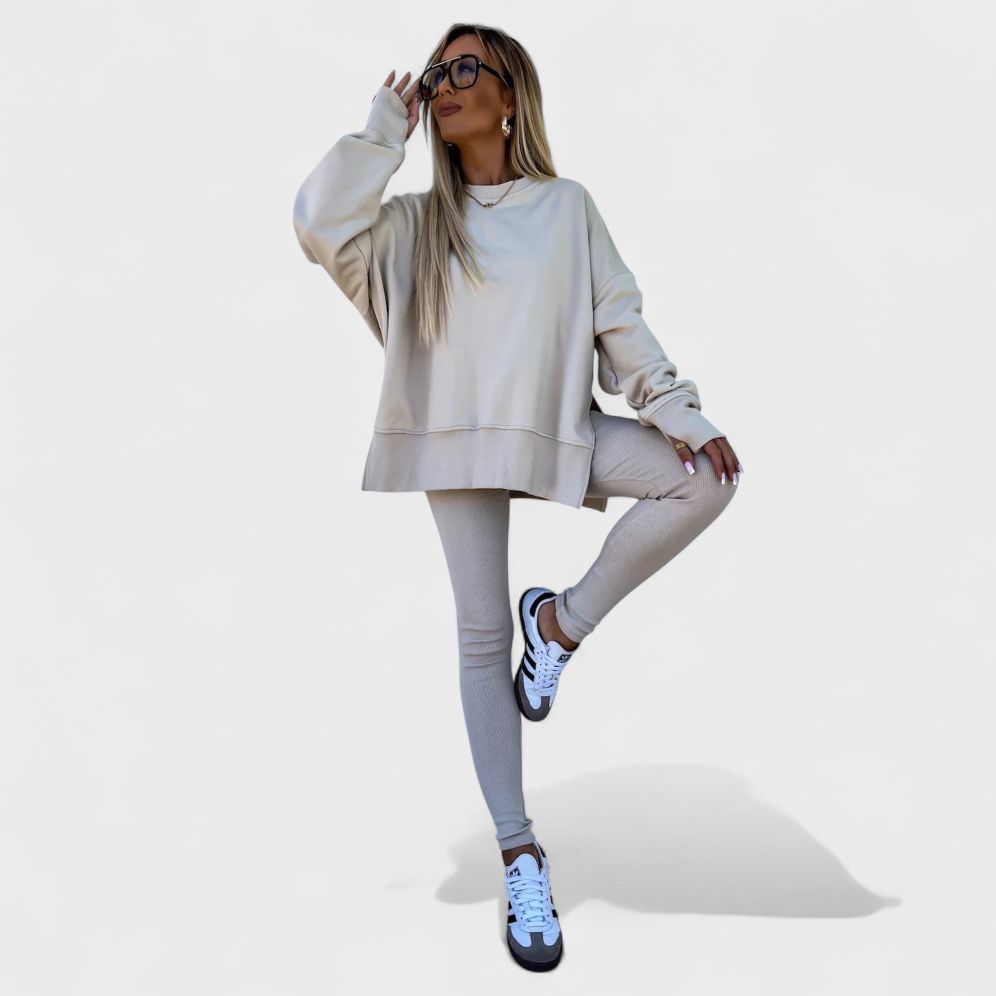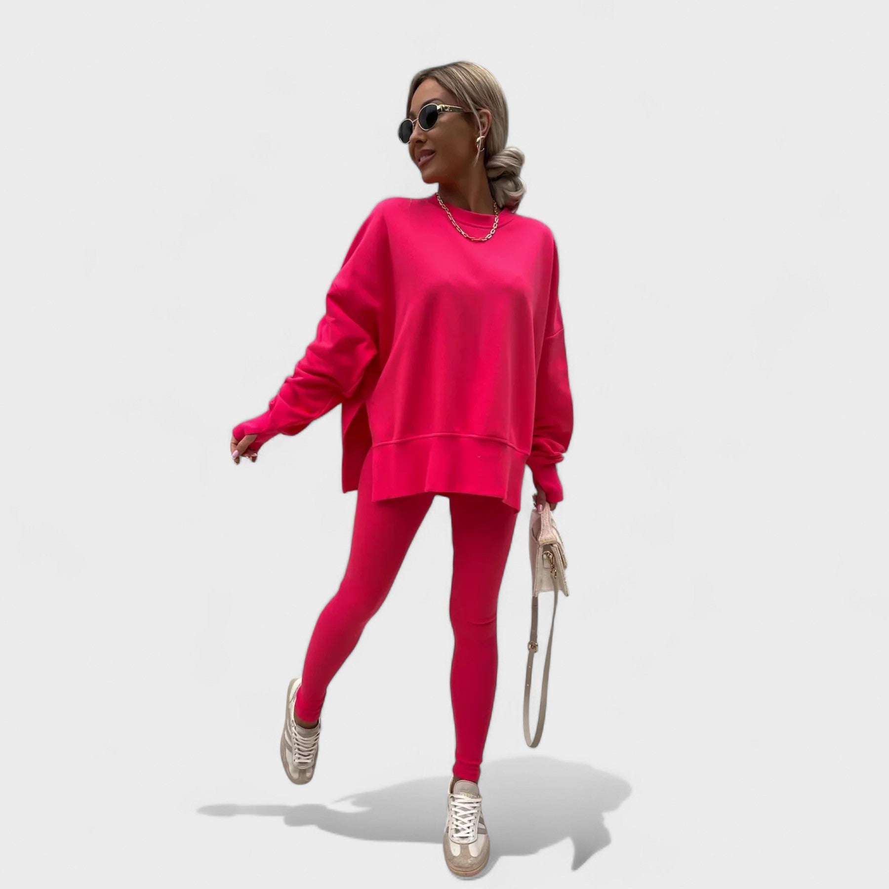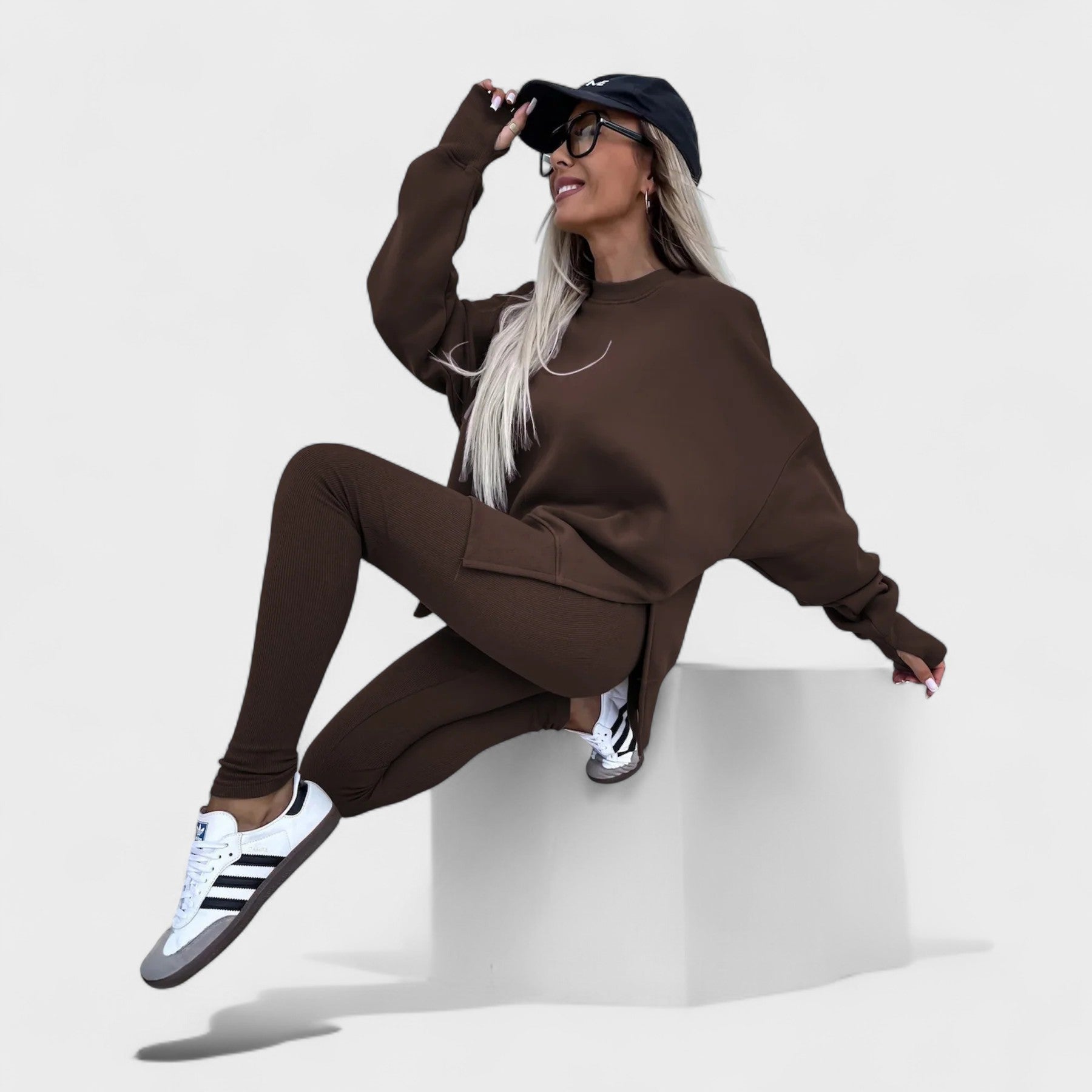 Este conjunto desenfadado es la fusión perfecta entre elegancia casual y bienestar. Creado para acompañar tu día con suavidad y confianza, ofrece libertad de movimientos sin comprometer el estilo.